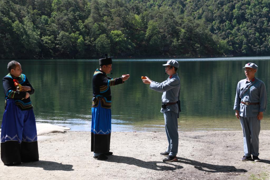 演情景剧。“你看每一个民族就像一座山峰,许许多多的山峰连在一起就可以把天都撑起来,我们各族人民团结起来,还打不倒一个蒋介石吗?!”“小叶丹”郑重地接过红军参谋在彝海舀来的两碗水,让彝族祭司将刚杀的鸡血倒入碗中,和“刘伯承”歃血为盟。学员们自编自导自演的“彝海结盟”情景短剧正别开生面地上演。学员们观后表示,从刘伯承和彝族首领小叶丹从相遇到结盟的历史中,深刻体会到党的民族政策的胜利,体会到少数民族对红军的爱戴和军民的团结,体会到党维护民族团结的赤诚之心。