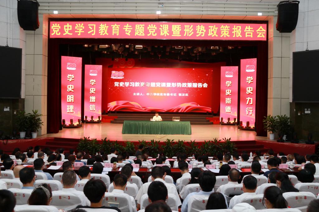 党史学习教育省委第六巡回指导组副组长周敏泉,市领导江海、李明出席报告会。