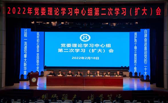 2月18日,我校在会堂召开党组理论学习中心组2022年第二次学习(扩大)会。全体校领导、副县级及以上干部参加会议,党委书记王斌主持会议。
