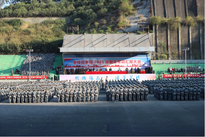 1月7日下午,我校2021级新生军训汇报大会在田径运动场隆重举行。校党委副书记胥刚、东区武装部上校部长康贺卫出席大会,学校相关职能部门负责人、各二级学院书记、分管学生工作领导、学生科科长、新生辅导员、志愿者、医生,以及2021级新生全体参训学员参加大会。大会由学工部部长周传兴主持。