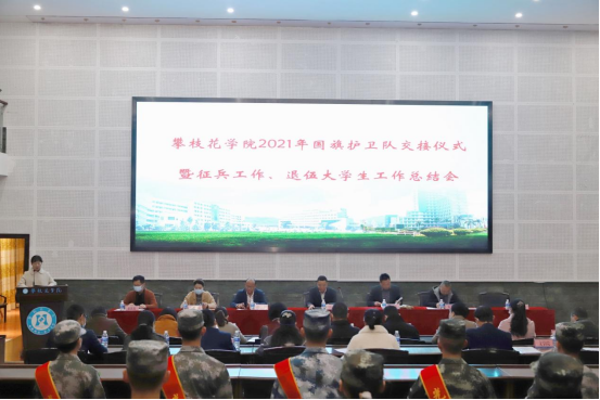 胥刚为2020-2021学年攀枝花学院“优秀护旗手”颁发荣誉证书,并总结讲话。