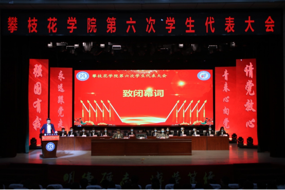 随后,团委书记助理唐伟伟致闭幕词。在庄严的团歌声中,攀枝花学院第六次学生代表大会圆满闭幕。