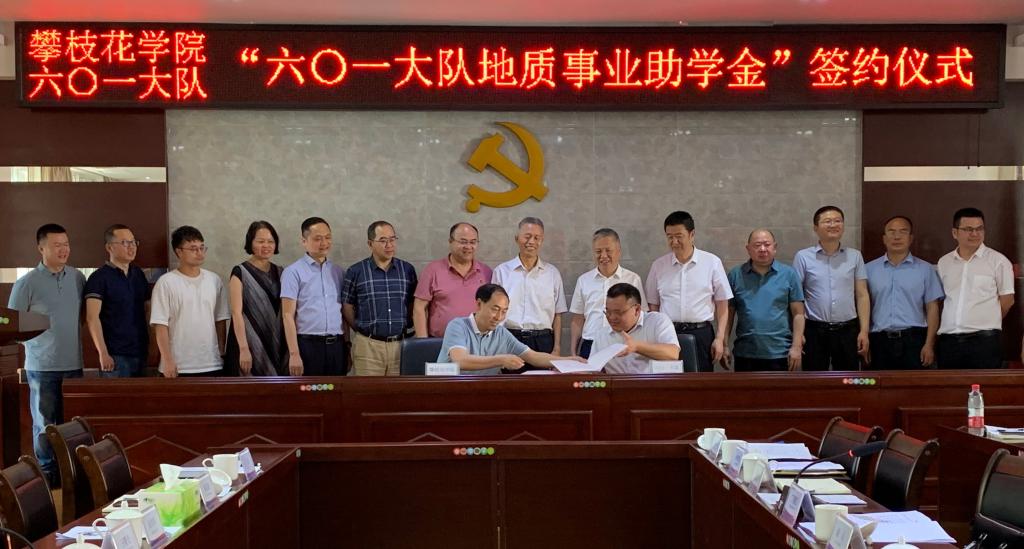 会后,双方举行了六〇一大队地质事业助学金设立签约仪式。六〇一大队在我校设立“六〇一大队地质事业助学金”,资助生化学院(农学院)和土建学院在读品学兼优学生,每学年评选20人,每人5000元,首期3年,共计30万人民币。