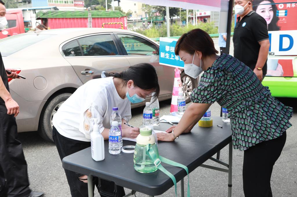 暖心的一站式接站。9月20日,为便于新生安全返校,减少中间环节,学校安排了8辆校地直通车,运送省内各地新生“一站式”返校;9月21-22日,学校安排14辆大客车作为闭环转运车,在攀枝花高速路口处、机场、火车站等地,全天候点对点的送学生直达校内学生公寓。师生志愿者们顶着烈日,热情周到地迎接来自省内外的新生及家长,为他们搬运行李,进行体温监测、身份信息核验、返校申请确认、手部消毒、二次测温等工作。在接站和转送新生的过程中,全体工作人员各司其职,从早上六点开始,一直工作到深夜,克服时间长、任务重等困难,耐心地为新生提供服务,确保把每一位新生安全送达学校。