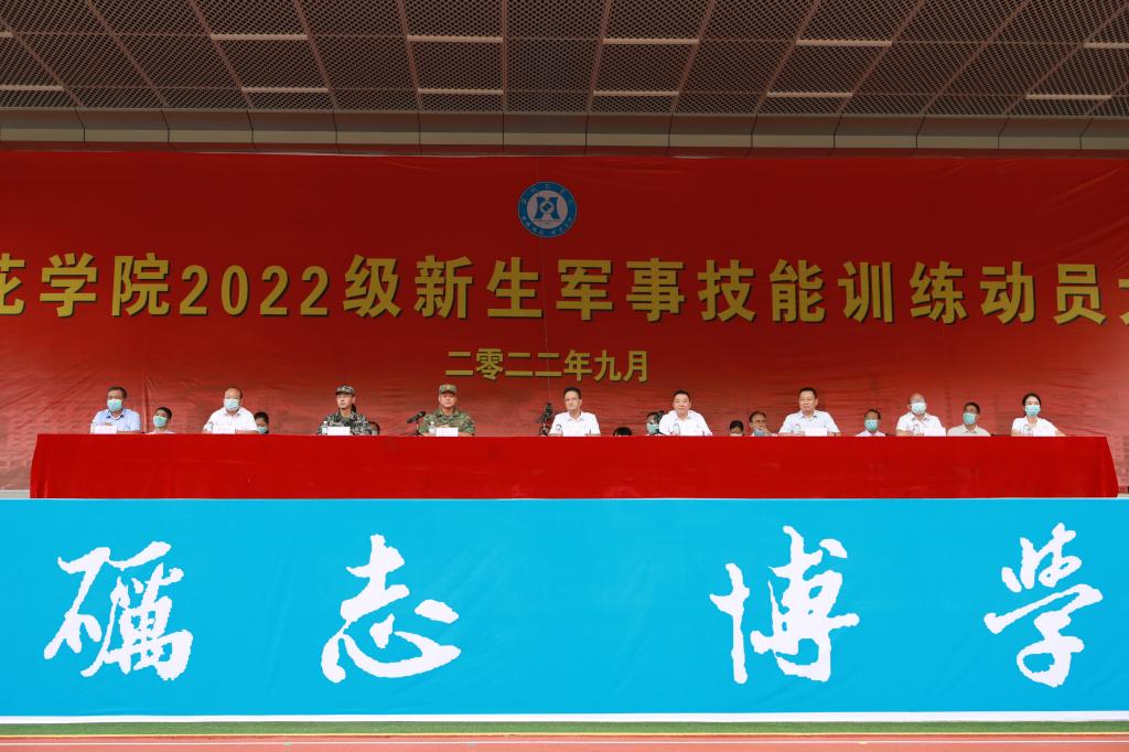 9月25日下午,我校2022级新生军训动员大会在南苑田径运动场举行,首批符合疫情防控规定的1423名新生身着迷彩服,列队集结,开启军事训练。校党委书记王斌、党委副书记胥刚、东区武装部上校部长康贺卫出席大会。