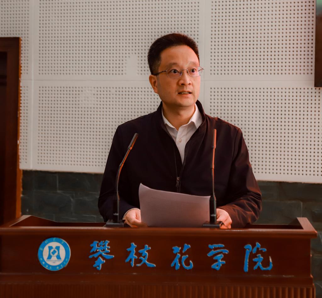 11月17日上午,由攀枝花市退役军人事务局和我校合作共建的攀枝花市退役军人学院成立大会在我校学术报告厅隆重举行。副市长、市公安局局长周强,攀枝花学院党委书记王斌、副书记胥刚,攀枝花军分区大校副司令员黄育松出席,市政府副秘书长邓红梅主持仪式。