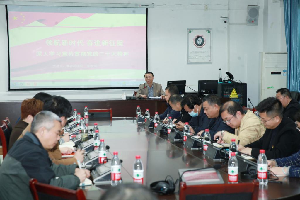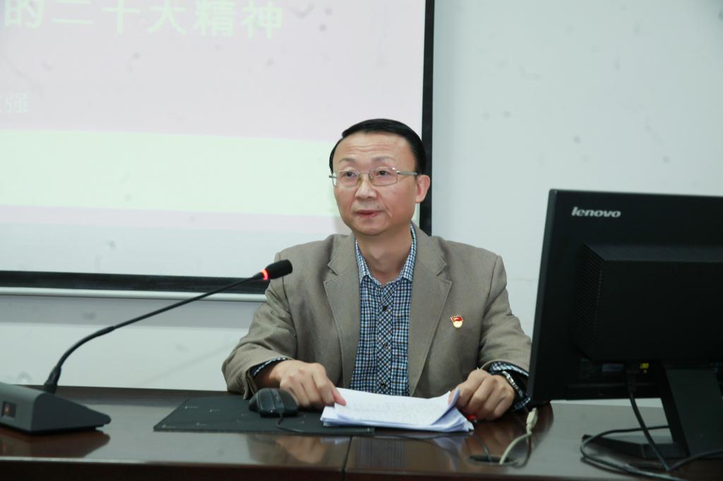 12月7日下午,校党委常委、副校长朱波强在外国语学院会议室为分管部门和联系学院师生作党的二十大精神宣讲报告。机关党委、后勤党总支、保卫处、资产公司干部职工,外国语学院党政班子成员、党员师生共同聆听宣讲报告。
