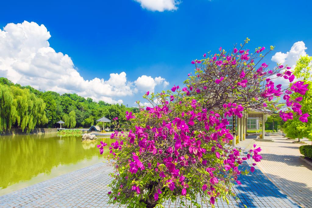借助“这里得天独厚”的地理环境,顺应地势地貌打造生态校园。十三五期间,实施了以三角梅、鸡蛋花、龙船花等为代表的校园美化项目,增加绿化面积近200亩,建立了三角梅资源库,打造了思源坡景区。今之校园,高处可望横断山脉绵延、金沙江水滔滔;既有小广场环拥楼宇,又有行车道复通幽径。漫步校园,可见廊桥卧水、亭阁雅静、山石玲珑、浮雕新颖;可赏棕榈映日、落红盘阶、虫鸟相伴、鱼戏莲间;可感木棉孤高、芒果飘香、鸡蛋花娇艳、三角梅志长。各类景致动静相随、和谐共生,智者仁者或乐水或乐山,尽皆相宜。