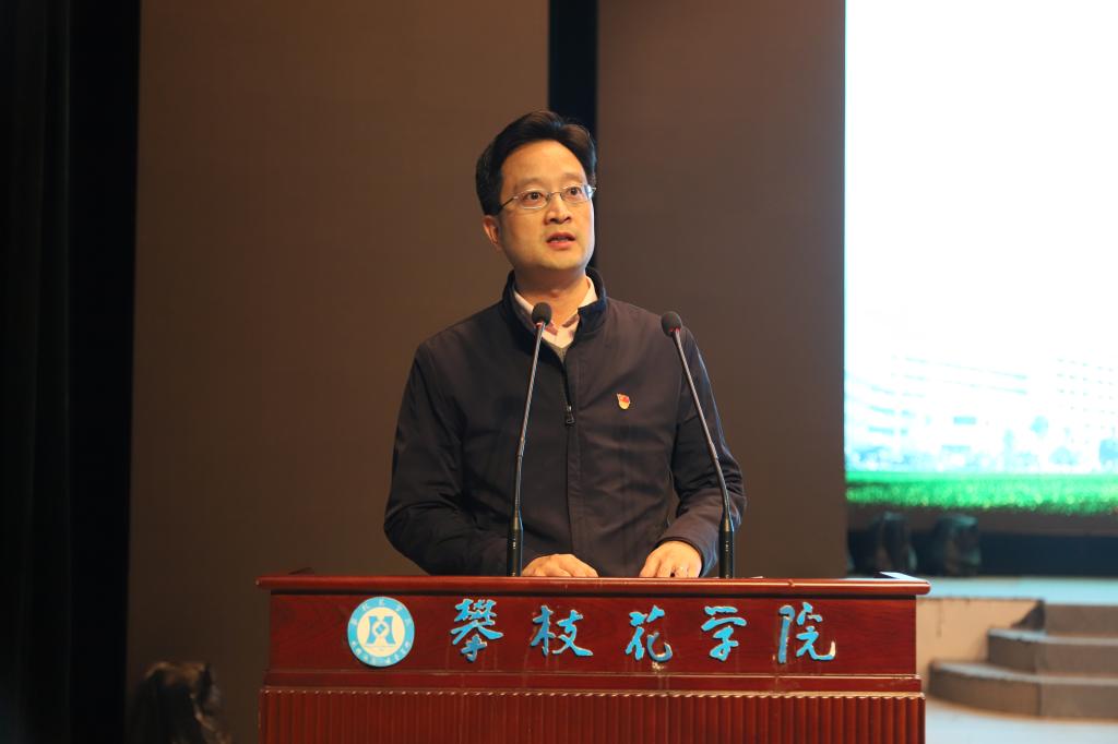 王斌讲话指出,学校高度重视并鼓励学生创新创业。近年来,我校学生参加双创活动取得了显著成绩,在国赛中实现了零的突破。他对获得荣誉的老师和同学表示祝贺。他希望攀大师生抓住机遇,投身创新创业,再创新发展中勇做双创先行者;希望攀大学子珍惜大学时光,做好职业规划,在创新创业实践中历练双创本领;希望相关部门围绕学校人才培养目标,高站位、全方位、多点位协同推动双创事业发展。以赛促学、以赛促教、以赛促创,大家共同努力,在2021年“互联网+”、“挑战杯”比赛中再创辉煌。