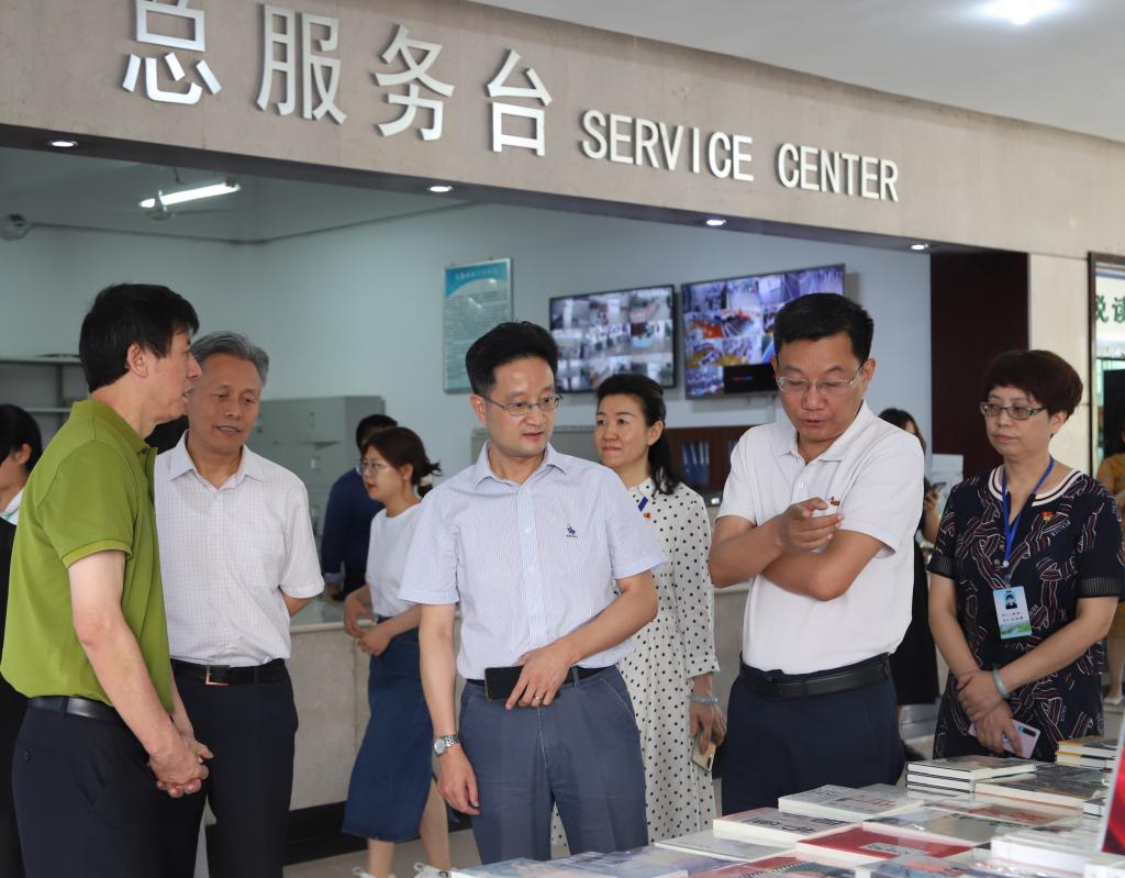 初夏的校园阳光明媚、微风和煦。上午,党委书记王斌,党委副书记、校长王曙光与副校长刘立新来到读书月活动现场参观、指导,图书馆、党政办公室、党委统战部、团委负责人陪同。
