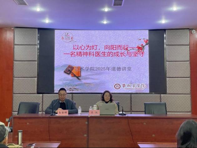 11月27日下午,艺术学院在弘毅楼416开展“以心为灯 向阳而行”为主题的道德讲堂活动。本次活动聚焦心理健康问题,邀请了攀枝花第三人民医院老年三病区主任、副主任医师、中级心理治疗师、四川省心理学会医学心理专委会委员吴敏作主题讲座。学院党委书记孙念祥及近百名师生参加了讲座。