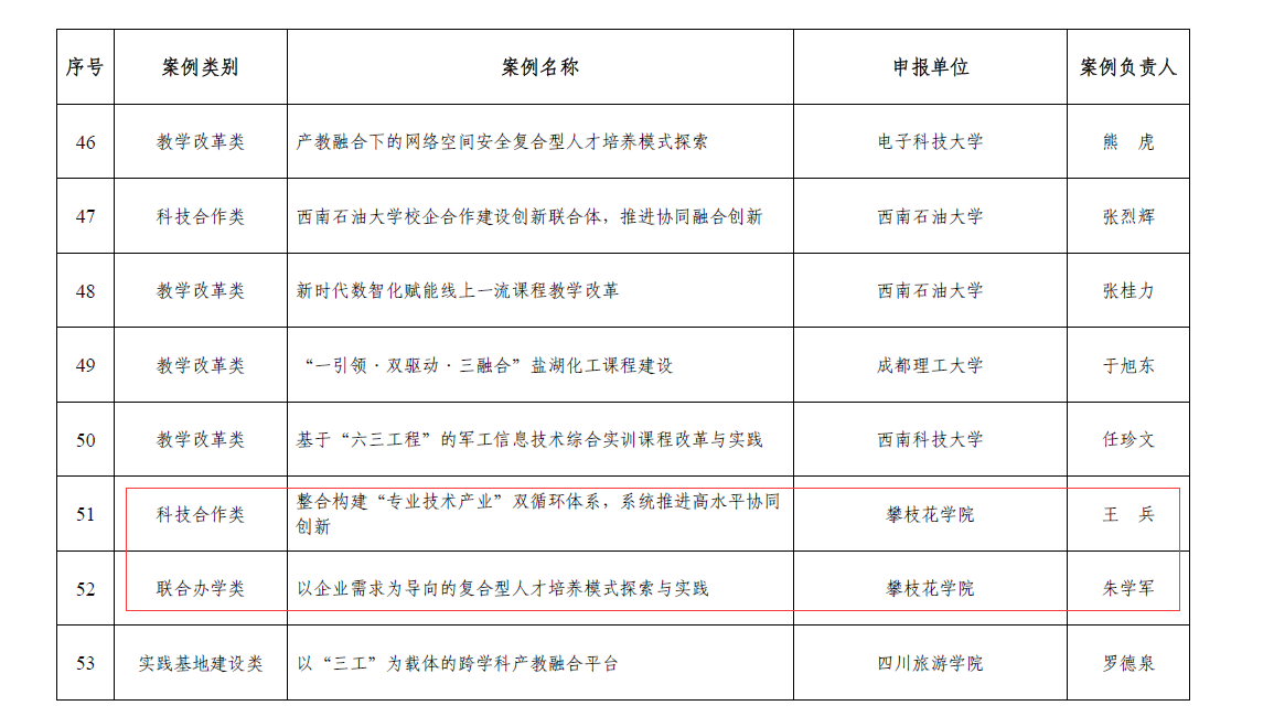在本年度“校企合作双百计划”典型案例申报活动中,我校共申报典型案例4个,其中“整合构建‘专业技术产业’双循环体系,系统推进高水平协同创新”项目和“以企业需求为导向的复合型人才培养模式探索与实践”项目喜获提名。