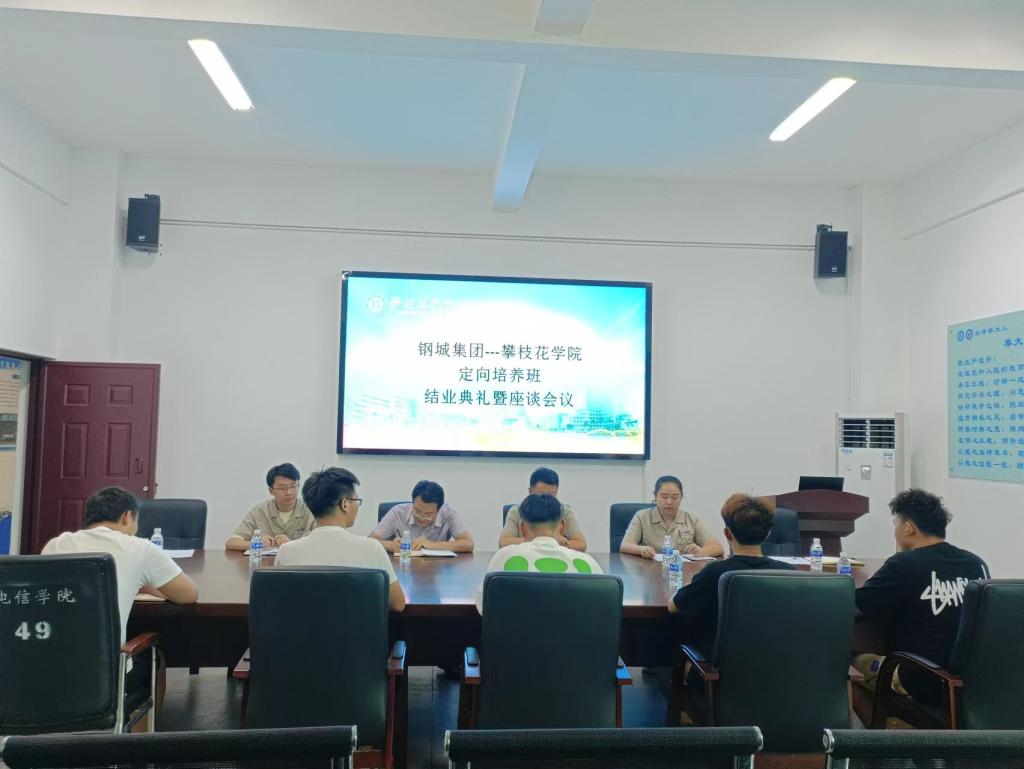 7月10日下午在电信学院会议室,召开了钢城集团--攀枝花学院定向培养班结业典礼暨座谈会议,我校电信学院院长赵相瑜、产教融合部、钢城集团人力资源部(组织部)副部长刘松延、培训课科长朱妍熹等人参加了本次会议。