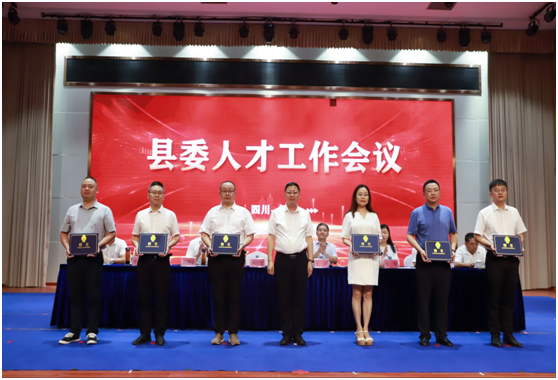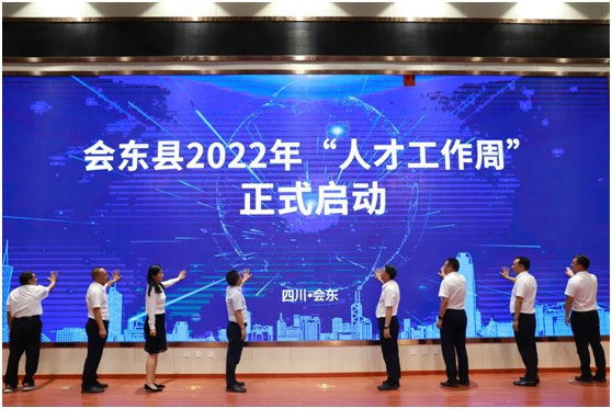 在 “人才工作周”启动仪式环节,王兵与会东县四大班子领导一同按下掌印,共同为会东“人才工作周”系列活动启幕。