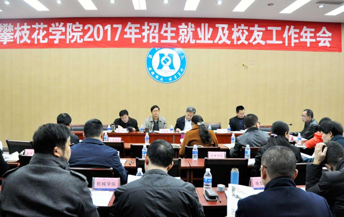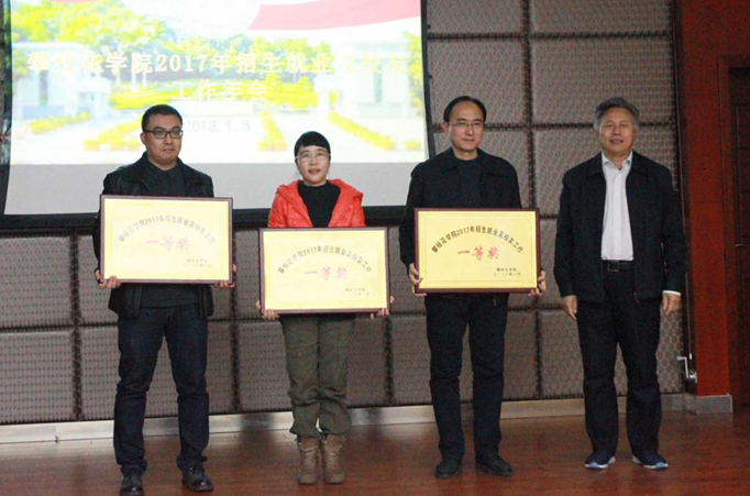 招就处相关负责人总结了我校2017年的招生、就业及校友工作。医学院、人文学院、土建学院结合本学院的相关工作作了经验交流发言。会议还对医学院、人文学院、数计学院等单位进行了表彰。