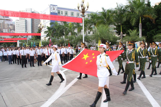 典礼伊始,在阳光广场举行了升旗仪式,全体新生面对国旗、校旗、院旗进行了庄严宣誓,仪式结束后,全体人员有序进入各会场。