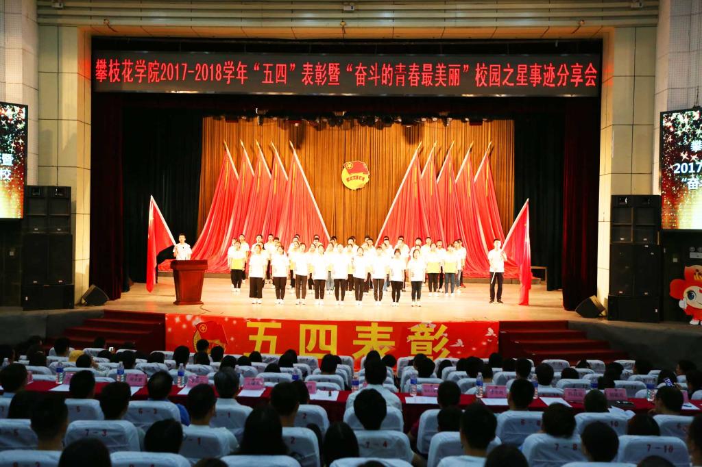 5月3日下午,2017-2018学年“五四”表彰暨“奋斗的青春最美丽”第五届校园之星事迹分享会在会堂举行。学校领导,相关职能部门负责人,各二级学院分管领导、分团委书记、学生代表共计1000余人参加大会。