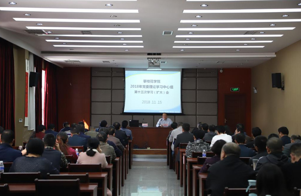 11月15日,我校于办公楼四楼附楼会议室召开了以“深入学习贯彻学校第二次党代会精神,扎实开展学校发展深度研讨,浓墨重彩写好新时代攀大‘奋进之笔’”为主题的2018年党委理论学习中心组第十三次学习(扩大)会,专题学习学校第二次党代会精神。会议以集中学习、分组讨论、汇报交流的形式进行。全体校领导、中层及以上干部和相关人员参加会议。党委书记肖立军主持会议并作题为《为建设应用型一流大学、建设和谐美丽幸福攀大而奋斗》总结报告。