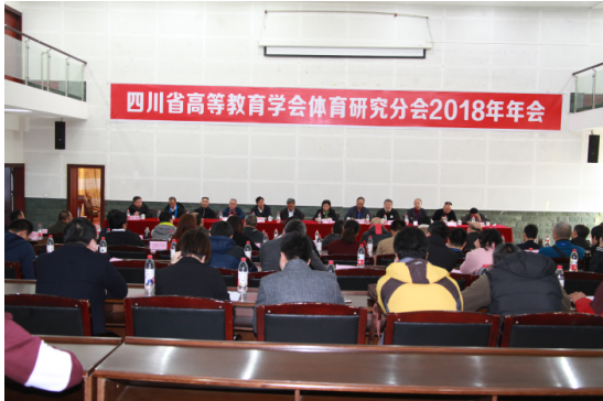 12月13日,四川省高等教育学会体育研究分会2018年年会在我校学术报告厅召开,本次年会由四川省教育厅主办,四川省高等教育学会体育研究分会和我校联合承办。四川省教育厅体卫艺处正处级调研员赖英莉、苗建平,四川省高等教育学会体育研究分会理事长、副理事长、秘书长,我校党委副书记、校长王曙光,校党委常委、副校长石维富出席会议,省内33所高校的85位相关负责同志参加了本次会议。会议由四川省高等教育学会体育研究分会副理事长兼秘书长文烨教授主持。
