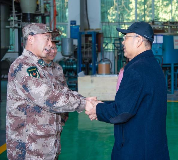随后,姜永申司令员一行参观了我校钒钛材料中试基地,他充分肯定了我校坚持“立德树人、产教融合、应用为先”的办学理念,扎实推进应用型一流大学建设方面取得的成绩,对学校植根地方、校地相融、产教融合、转型发展方面给予了高度评价,希望学校和专家们继续努力,为加快建设美丽繁荣和谐四川做出新的更大贡献。
