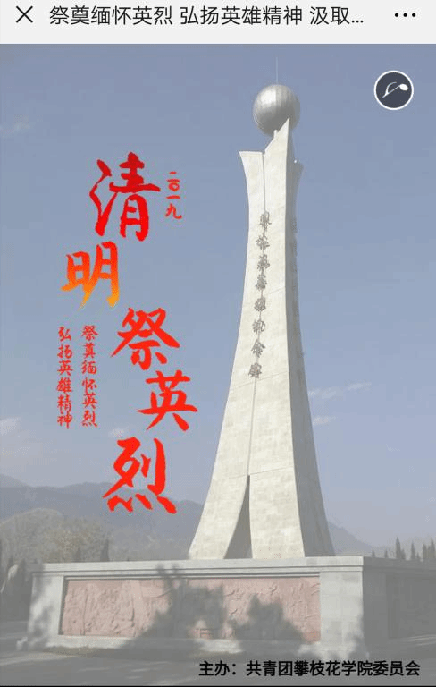 为弘扬民族精神,传承三线精神,教育引导广大师生传承弘扬中华民族优秀传统文化,自觉践行社会主义核心价值观,近日,我校师生开展了“我们的节日•纪念五四运动 清明祭奠英烈”主题系列活动,通过瞻仰纪念碑、网上祭奠、参观博物馆、节日宣传等方式共同缅怀和祭奠为救亡图存、振兴中华、成立新中国以及三线建设、人类发展献出青春、智慧乃至生命的革命英烈、先辈。