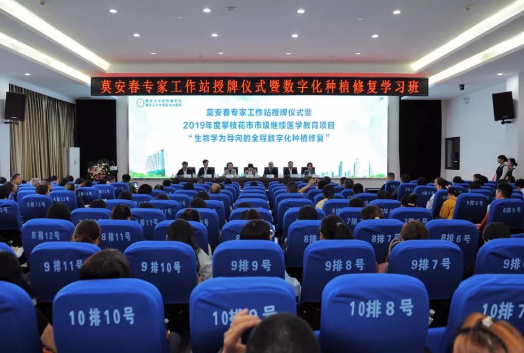 11月9日,在市政府的牵头和扶持下,攀枝花学院附属医院“莫安春专家工作站”签约揭牌仪式暨“生物学为导向的全程数字化种植修复市级继续教育项目”在医院多功能报告厅隆重举行,来自攀枝花及周边地区200余名医务工作者共同见证这一重要的时刻。攀枝花市人民政府副市长马晓凤,四川大学华西口腔医院口腔种植科教授、主任医师、博士研究生导师莫安春教授及其专家团队,市卫生健康委党委书记、主任徐翠,副主任张福鑫,医院领导班子成员出席揭牌仪式。马晓凤和莫安春为攀枝花市中西医结合医院“莫安春专家工作站”揭牌,并发表了热情洋溢的致辞,揭牌仪式由徐翠主持。