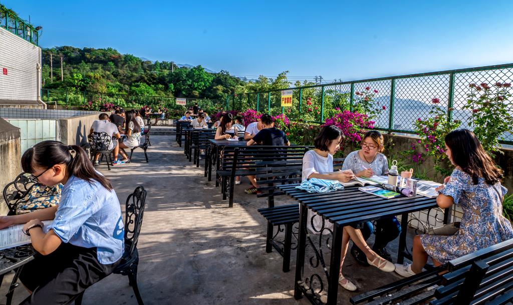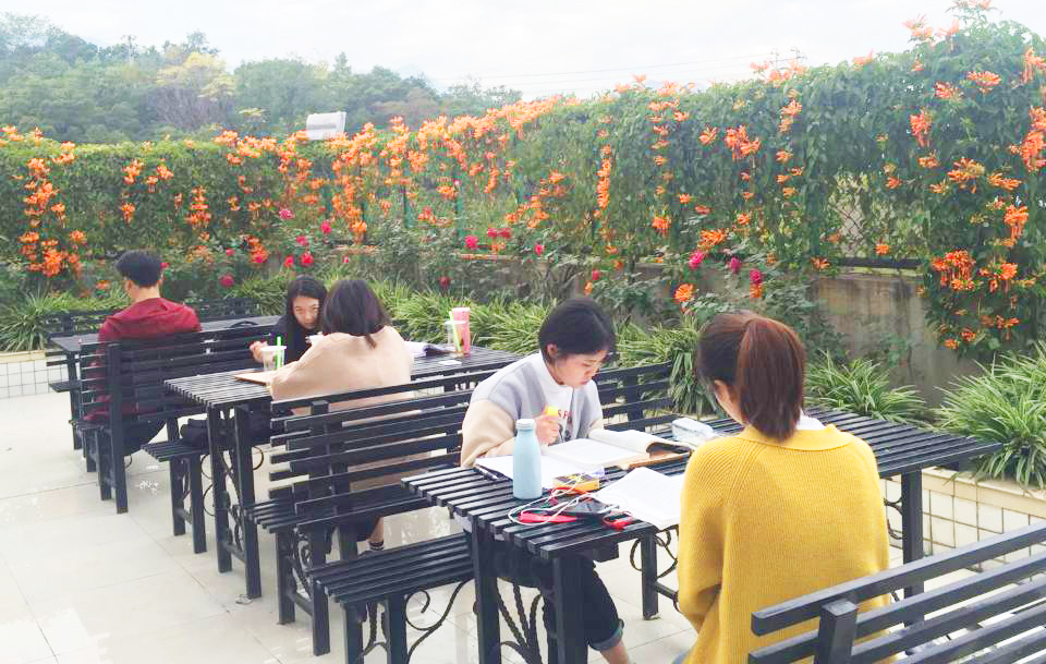 目前,由13片阳光室外阅读区构建而成的“花园图书馆”已初步建成。阳光室外阅读区分别建设于图书馆建筑一楼至七楼的13片室外空旷区域及露台,总面积约4000平方米,设阅览座位共1000个。阳光室外阅读区为学生提供了一个朗读和讨论学习的功能区,使得图书馆的室内学习区与室外朗读讨论区得以区分,读者服务功能定位更加多元,服务内容更加丰富。