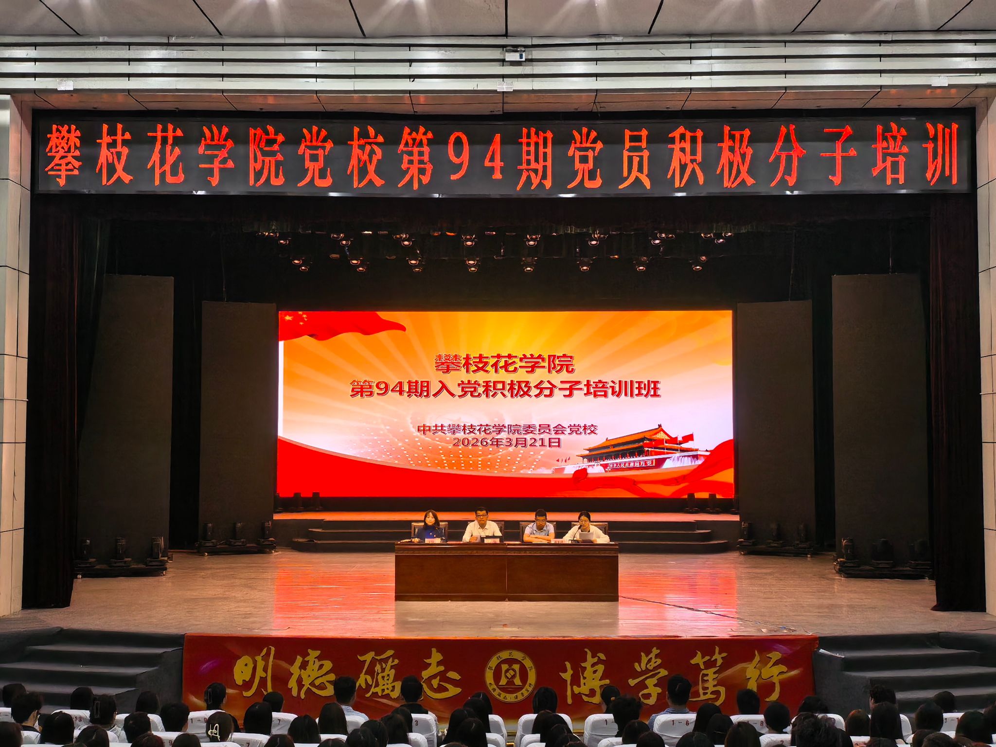 3月21日上午,我校第94期入党积极分子培训班在学校阳光会堂举行。共591名入党积极分子参加培训。