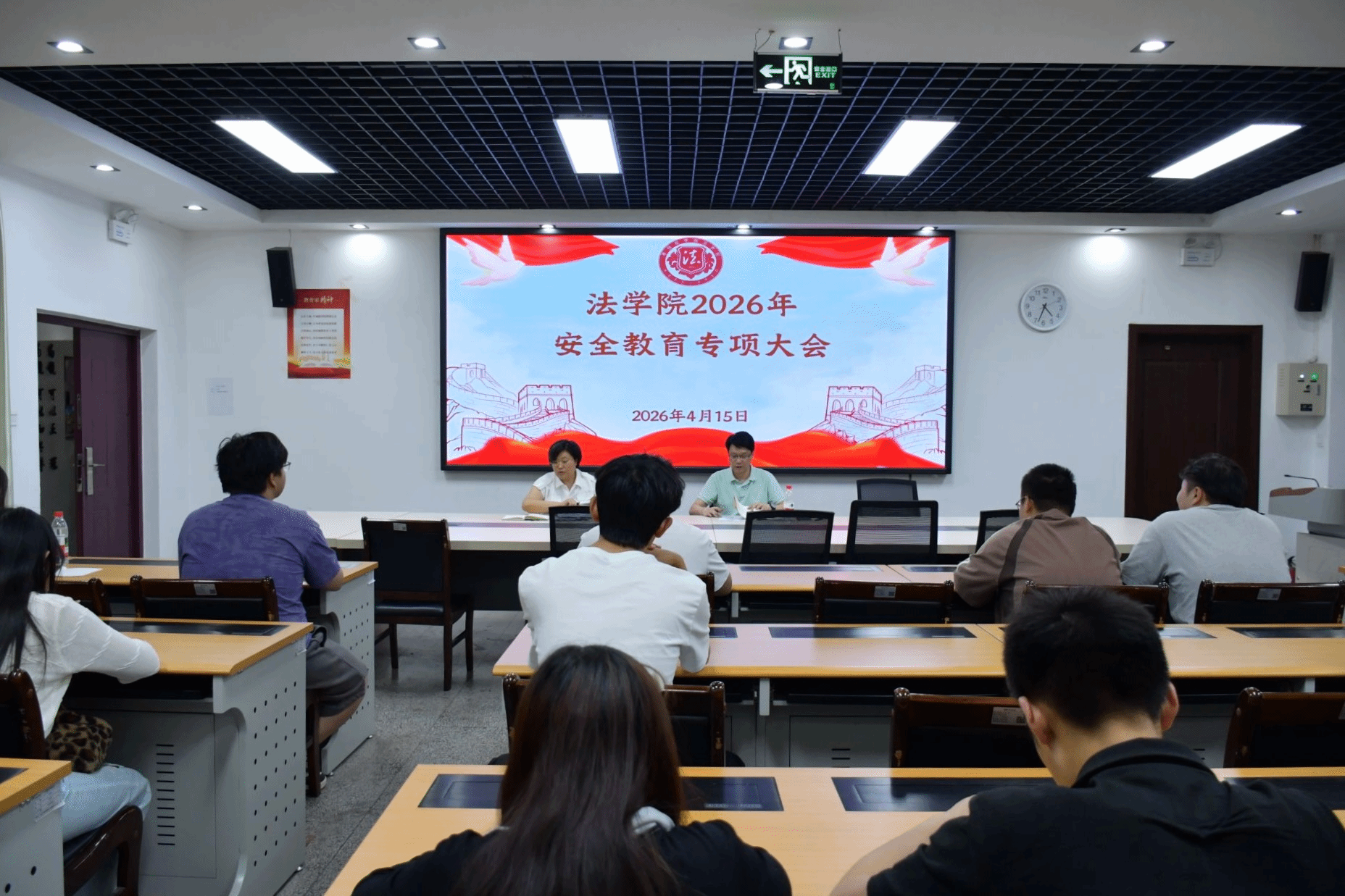 为落实学生管理要求,精准服务学生成长,强化校园安全建设。4月15日下午,法学院在凌云楼3-1会议室,先后召开2026年退役大学生座谈会、民族学生座谈会及安全教育专项大会。法学院党委书记张琳主讲,学生科科长兼分团委书记刘沙,退役大学生、各民族学生代表、团学组织各部门代表及各年级各班负责人参会。