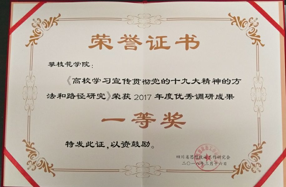 近日,四川省思想政治工作研究会发文(川政研〔2018〕5号),表彰四川省2017年度思想政治工作优秀调研成果,我校两项研究成果分别获一等奖和三等奖。