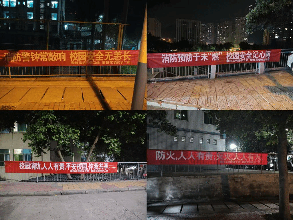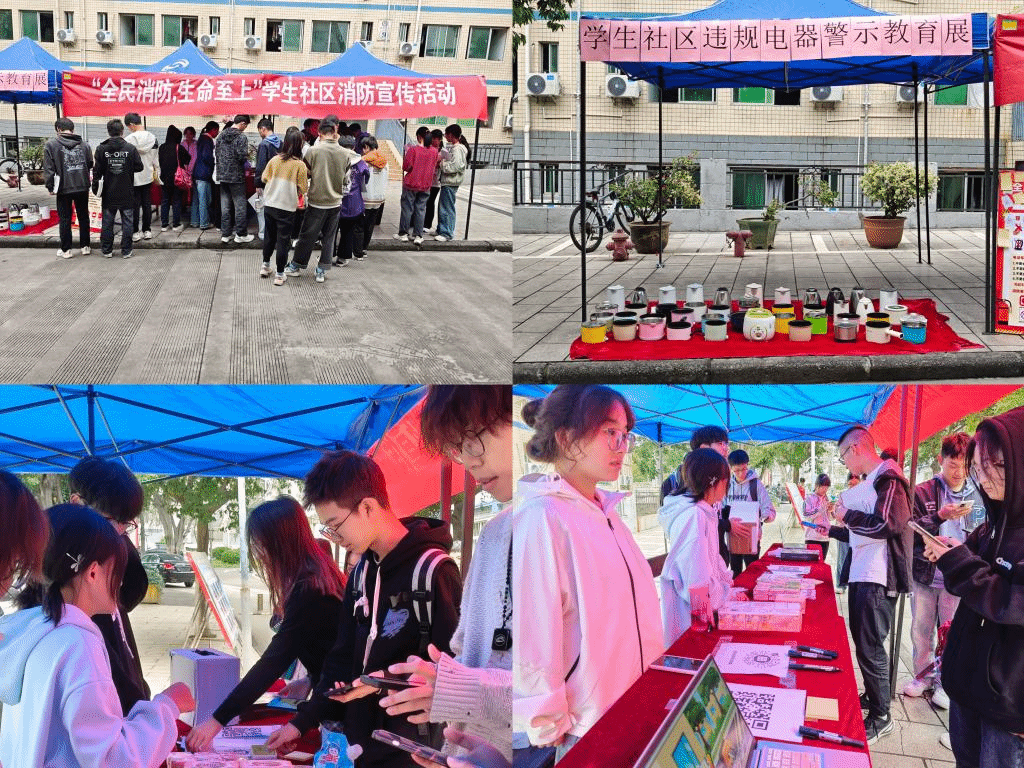 学校在公园校区柱光楼、东华山校区篮球场设置宣传点,通过开展消防安全知识竞答,展示违规电器和观看消防安全视频等多种形式,向广大学生普及消防安全知识。同时,学校在学生社区各楼栋悬挂了消防安全横幅,绘画了消防安全知识黑板报,入脑入心加强了安全教育。