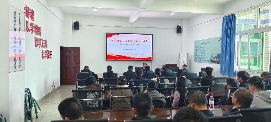 为深入学习贯彻习近平总书记关于全面深化改革的一系列新思想、新观点、新论断和党的二十届三中全会精神,电气信息工程学院于11月20日下午,在分析测试中心7楼会议室开展学习党的二十届三中全会精神的专题学习和宣讲,此次会议由学院党委书记周敏主持,学院教工党员及学生党员共计50余人参加。
