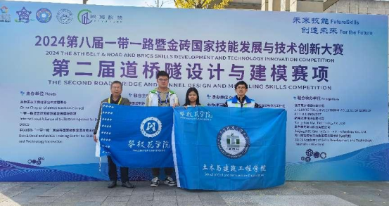 11月22日至24日,2024年第八届一带一路暨金砖国家技能发展与技术创新大赛第二届道桥隧设计与建模大赛在浙江同济科技职业学院举行,我校林跃水老师与吴峰老师指导的2022级土木工程专业学生曹楠楠和朱聪,在激烈的竞争中脱颖而出荣获三等奖。