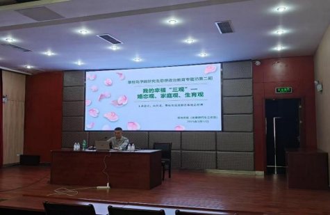 活动特邀攀枝花爱漫婚恋基地总经理冯兴龙作攀枝花学院研究生思想政治教育专题坊第二期分享。他以“我的幸福‘三观’——婚恋观、家庭观、生育观”为主线,结合心理学理论,生动剖析亲密关系发展的“月晕-幻灭-自省-启示”四阶段,引导青年群体树立理性、包容的婚恋价值观,引发在场观众对情感成长与自我认知的深度思考。