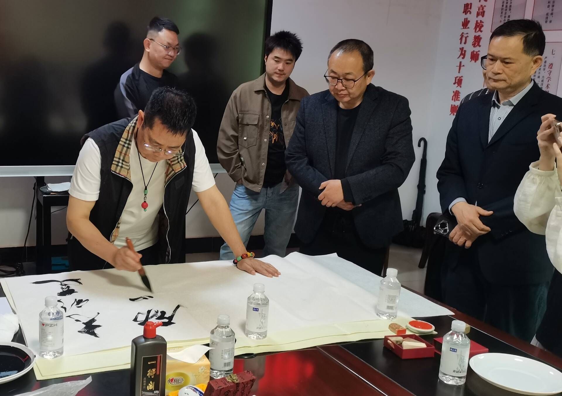 仪式结束后,罗异与现场众人进行了书法交流,并前往蒋静工作室进行参观。