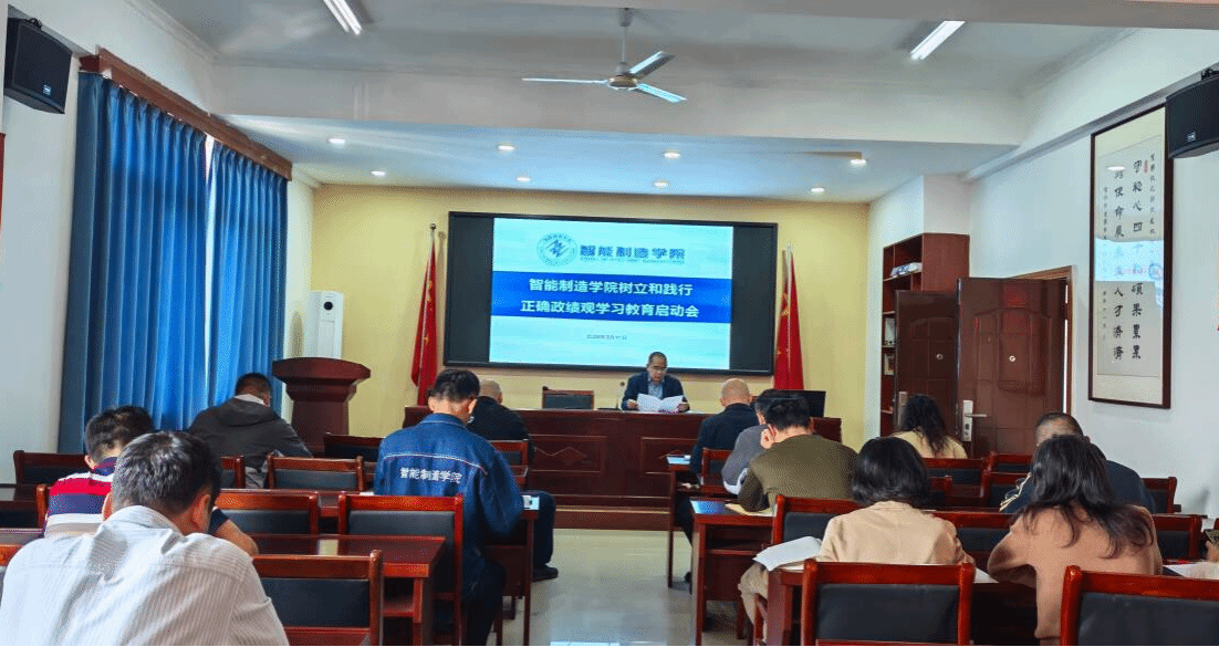 为深入学习贯彻习近平总书记关于树立和践行正确政绩观的重要讲话,引导全院教职工以实干担当推动学院高质量发展,3月11日,智能制造学院在学院会议室召开树立和践行正确政绩观学习教育启动会,全体教职工参加会议。